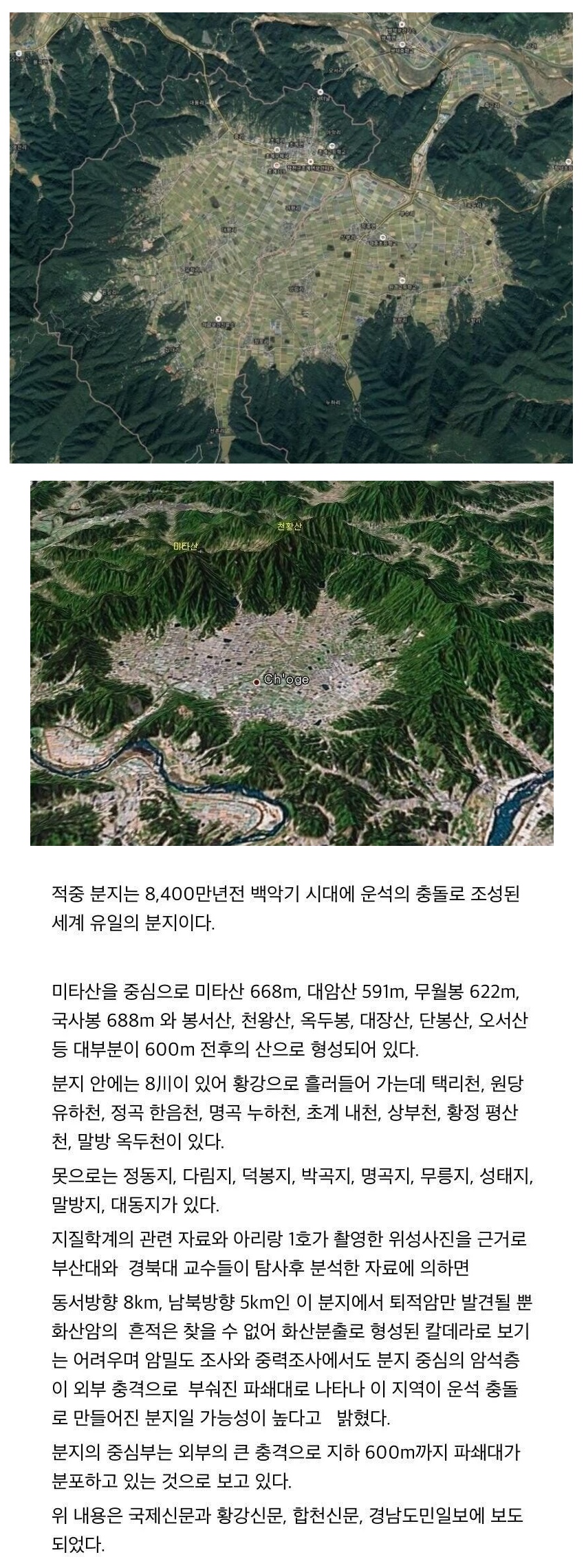 한국에 존재하는 세계유일 분지 지형 0