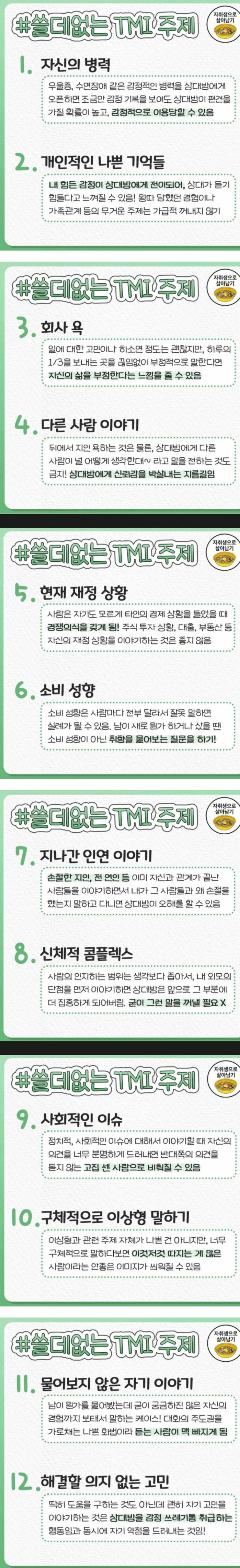| Subject | 인간관계를 망치는 대화 주제들 |