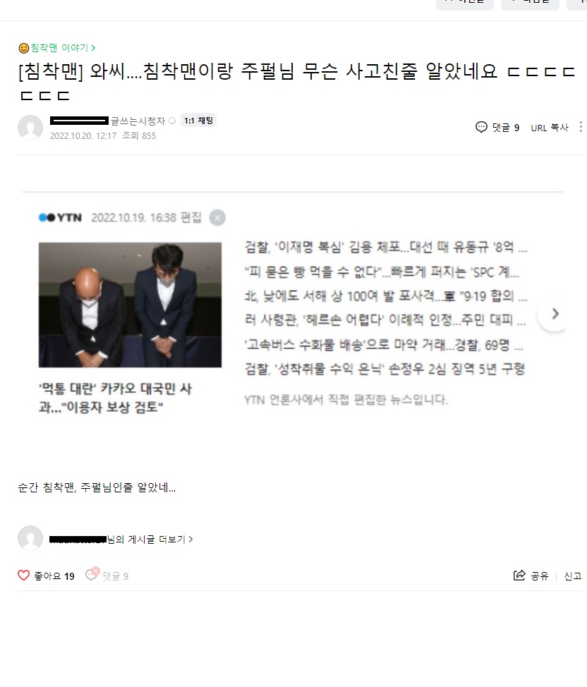 | Subject | 침착맨이랑 주호민 뭐 사고쳤나요? |