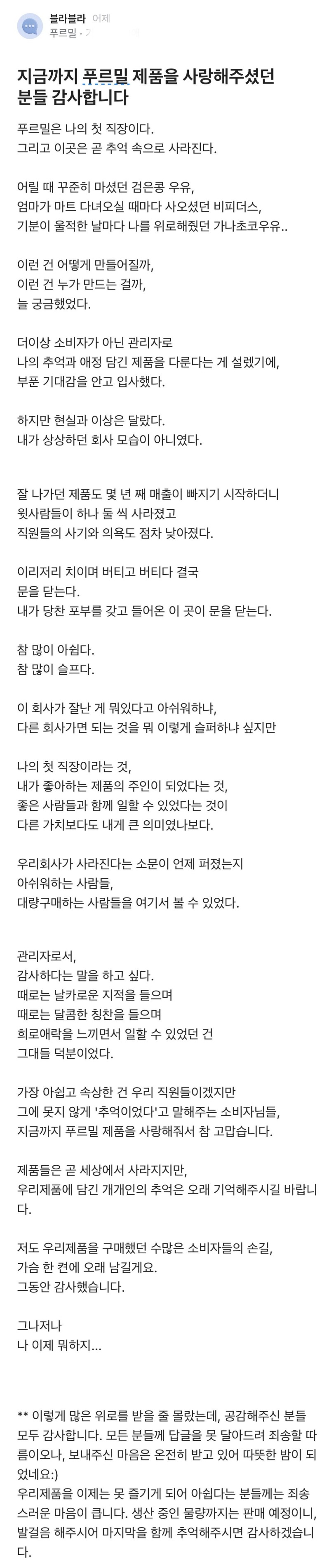 | Subject | 이번에 문 닫는 푸르밀 직원의 블라인드 글.jpg |