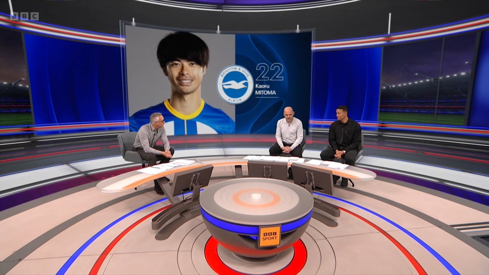 이 경기에서 1골 1퇴장유도, 그리고 나머지 2골에도 간접적이지만 중요한 공헌을 해내는 뛰어난 활약을 보였죠. MOTD에서도 미토마의 퍼포먼스에 감명을 받았는지 이렇게 단독 조명을 해줬습니다.