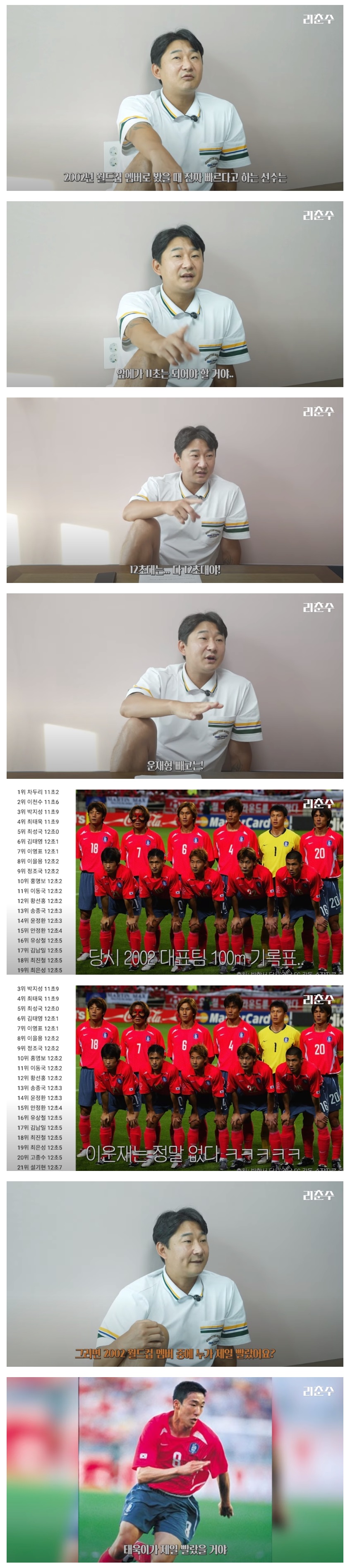 이천수 왈 2002때는 최태욱이 가장 빨랐고 이운재가 가장 느렸다 0
