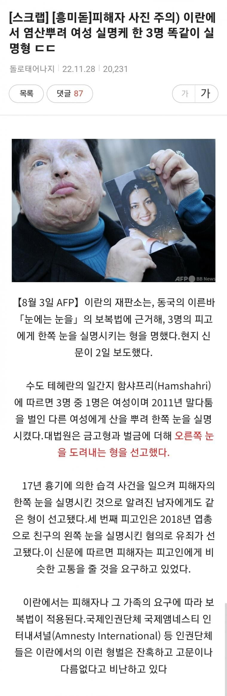 Subject   혐)이란 염산테러범에게 내려진 처벌.jpg