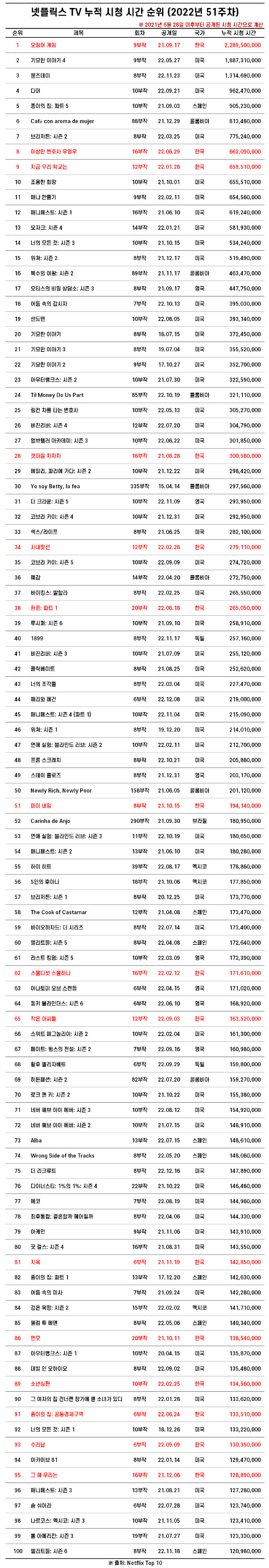 | Subject | 넷플릭스 누적 시청 시간 TOP100 |
