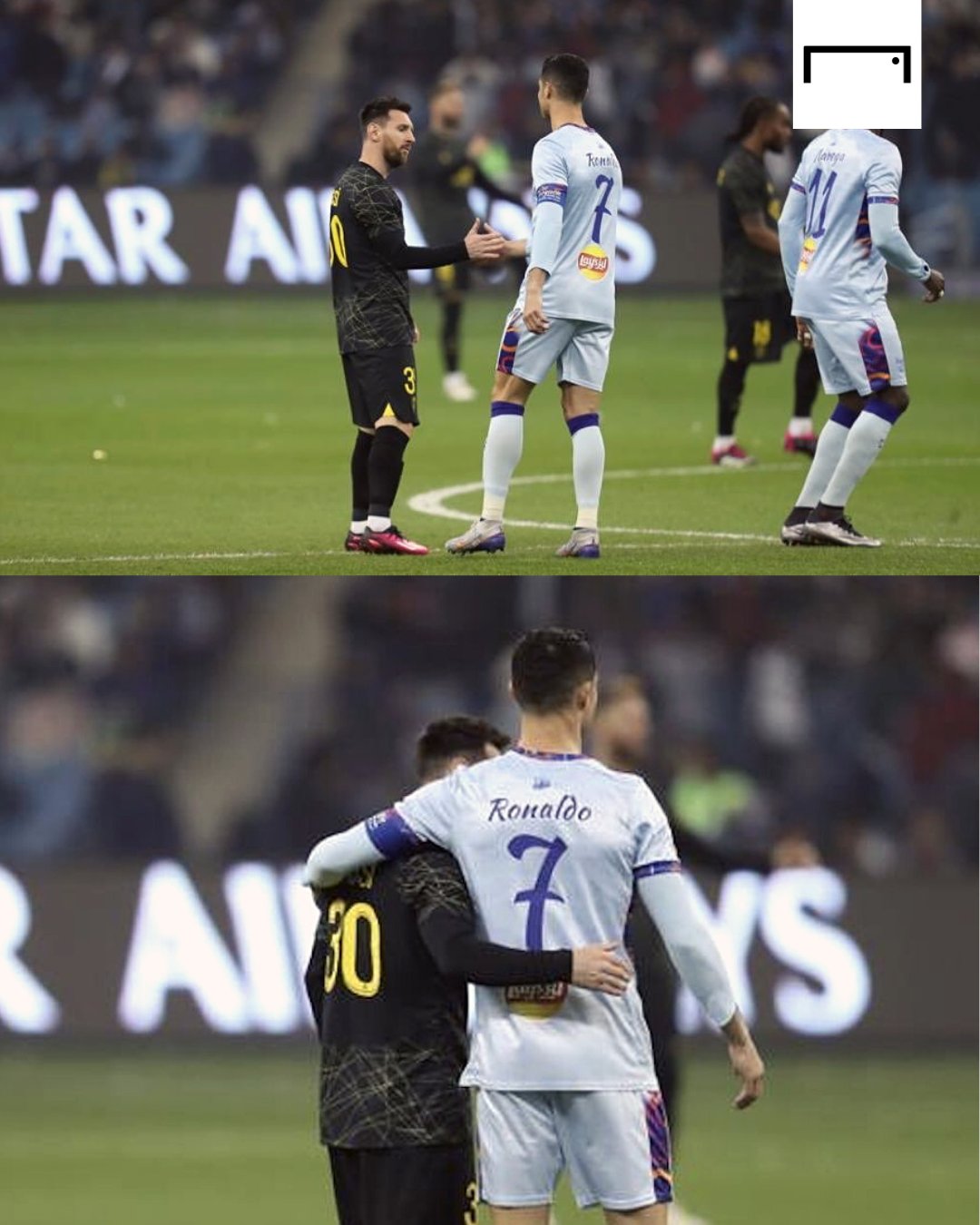 결국 성사된 파리 생제르맹 대 사우디 올스타의 경기에서 나란히 공격포인트를 기록한 메시와 호날두.