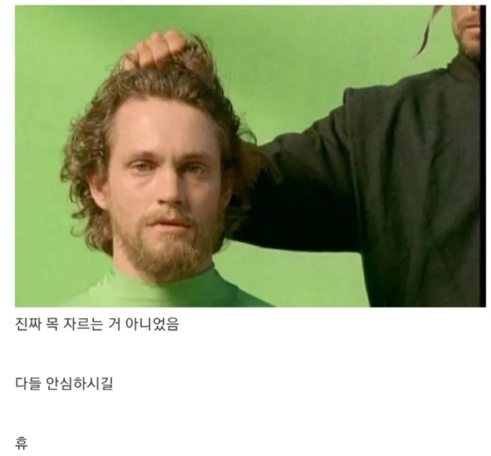 | Subject | 잘린 목 들고 있는 영화 속 장면의 비밀.jpg |