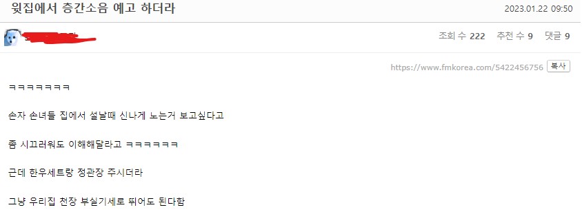 | Subject | 윗집에서 층간소음 예고하더라 |