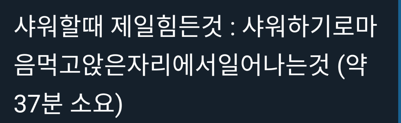 | Subject | 샤워할 때 가장 어려운 부분 |