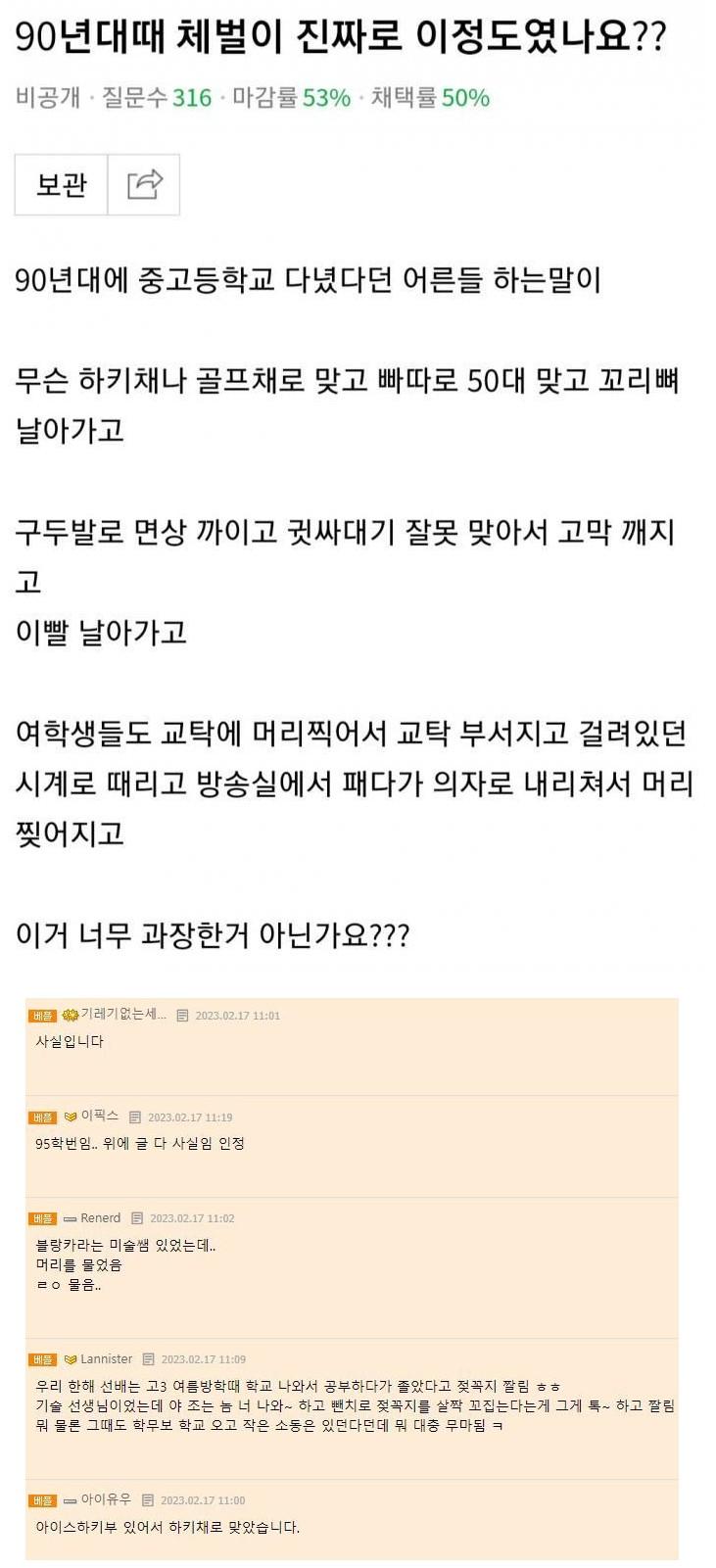 Subject   90년대때 체벌이 진짜로 이정도였나요?
