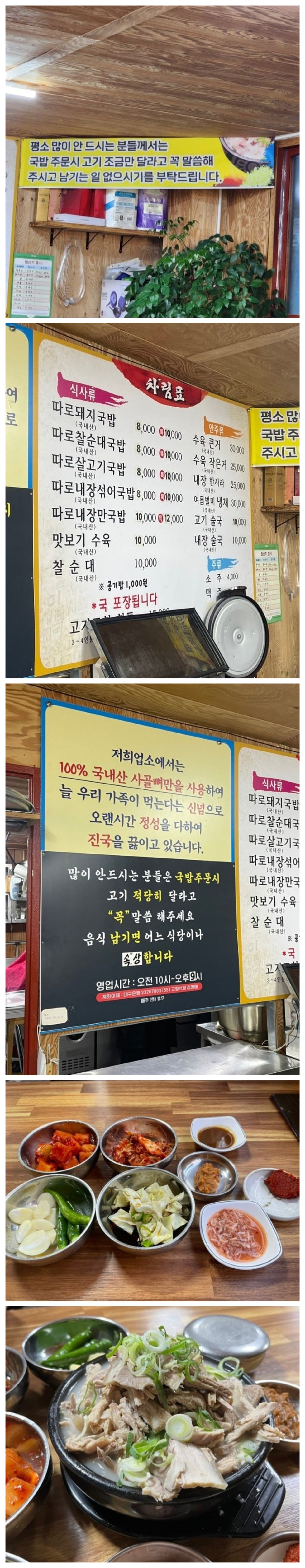 거기가 어딥니까아~~~!!! 라고 하려고 했더니 원 출처 댓글을 보니 대구 고향돼지국밥 - 대구 동구 경대로 140 라고 합니다. 추천은 내장섞어라고 하읍니다. 1