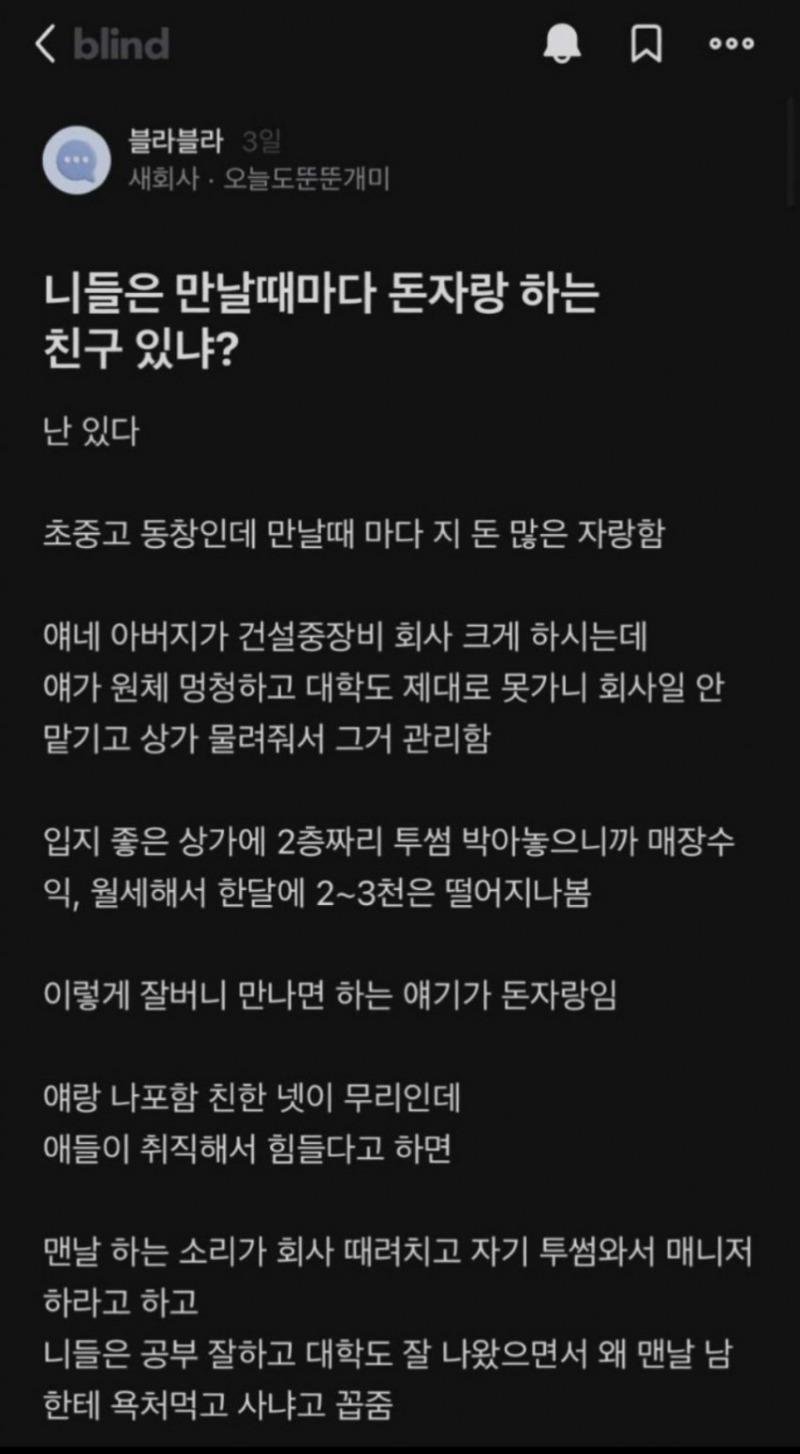 Subject   니들은 만날때마다 돈자랑 하는 친구 있냐?