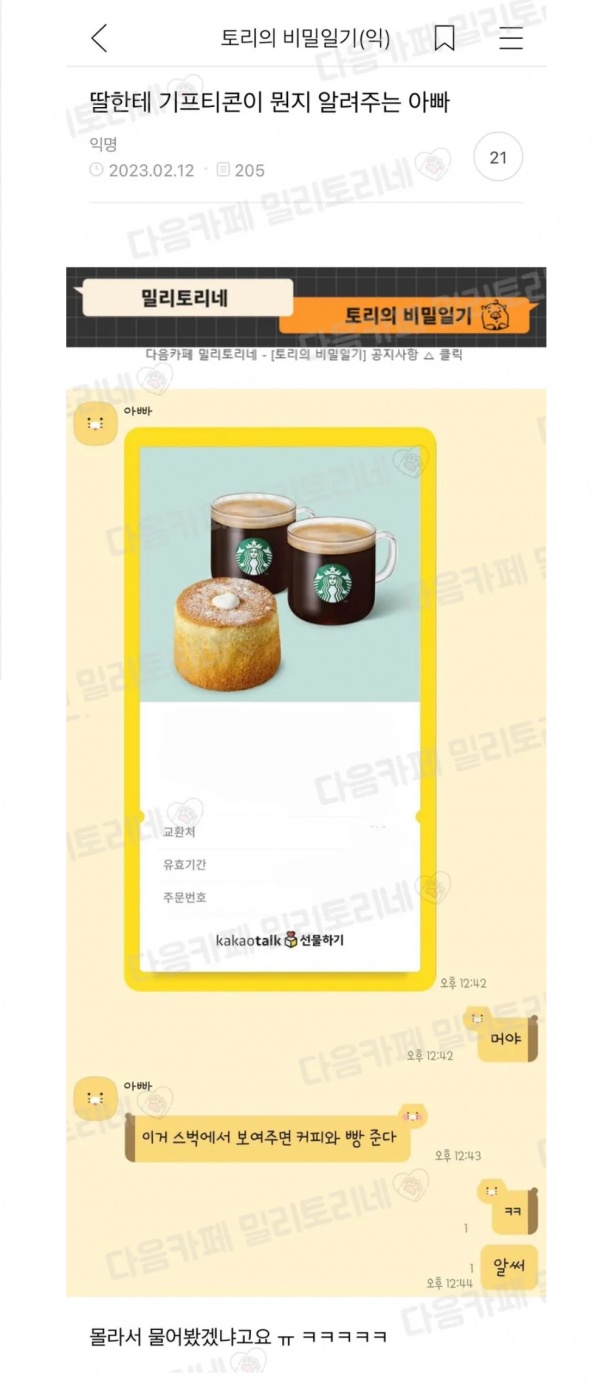 | Subject | 딸한테 기프티콘이 뭔지 알려주는 아빠 |