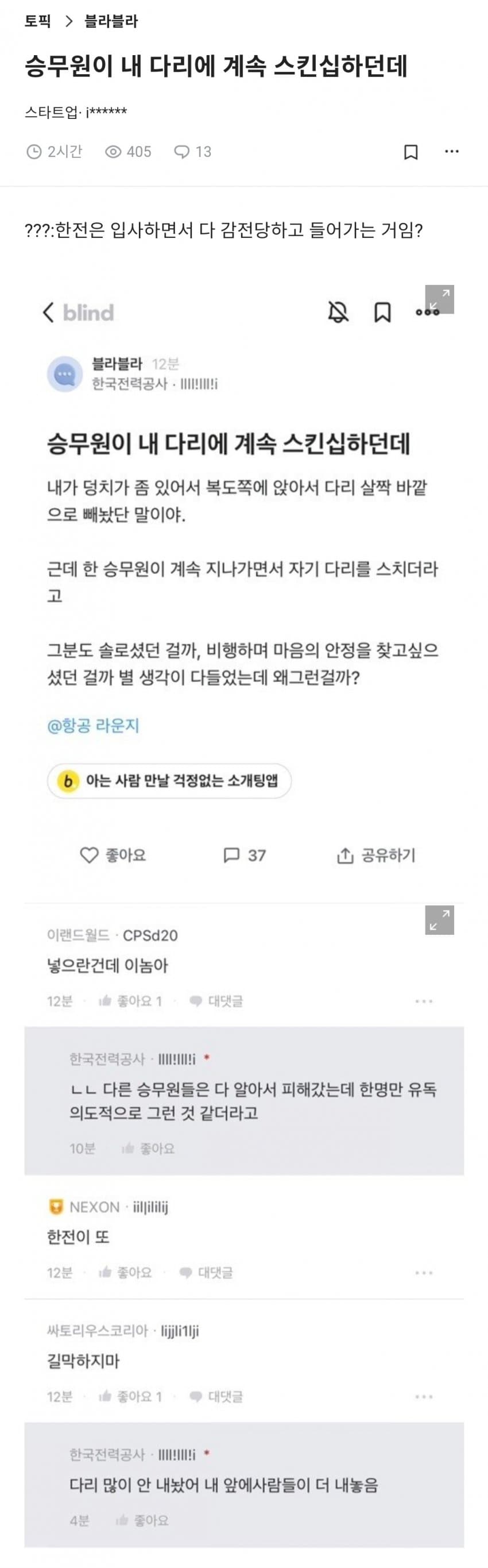 | Subject | 승무원과 다리를 스친 직장인 |