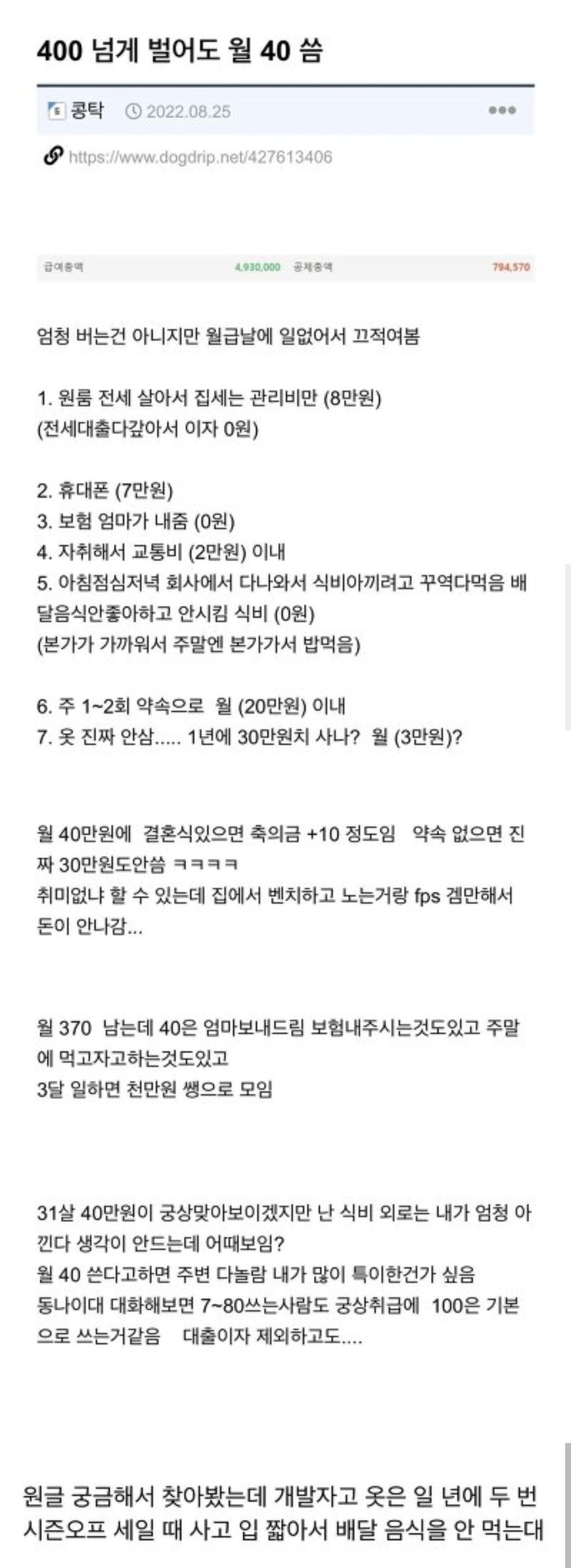 | Subject | 400 넘게 버는데 월 40만원 쓴다는 개발자.jpg |