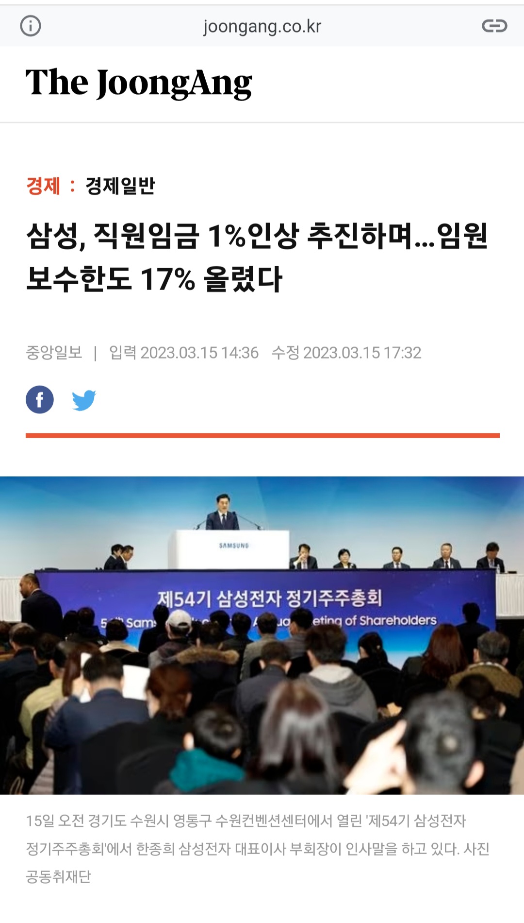 임원보수한도는 17퍼 상승으로 주총통과