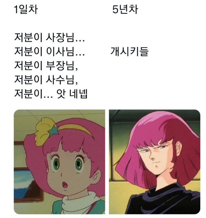 | Subject | 회사 신입과 5년차의 마음가짐 ㅋㅋㅋ |