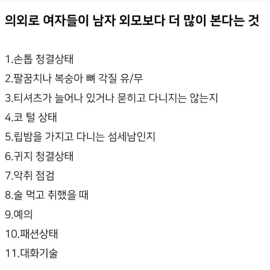 Subject   여자들이 남자 외모보다 중요시한다는 것들
