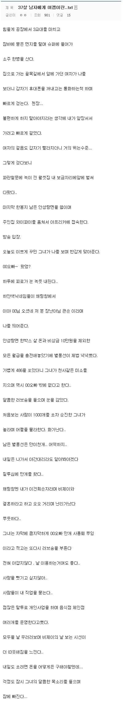 전형적이라 주작같긴한데… 여튼. 저글의 진위는 모르겠으나 이거 딱 유흥 윤락에 빠지는 과정 판박이. 저 돈이면 소주가 몇병이여… ㅜㅜ 0