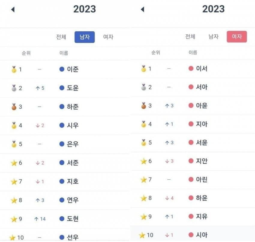 대부분 어린이집이나 놀이터에서 많이 들어본 이름이군요 ㅋㅋㅋ 0