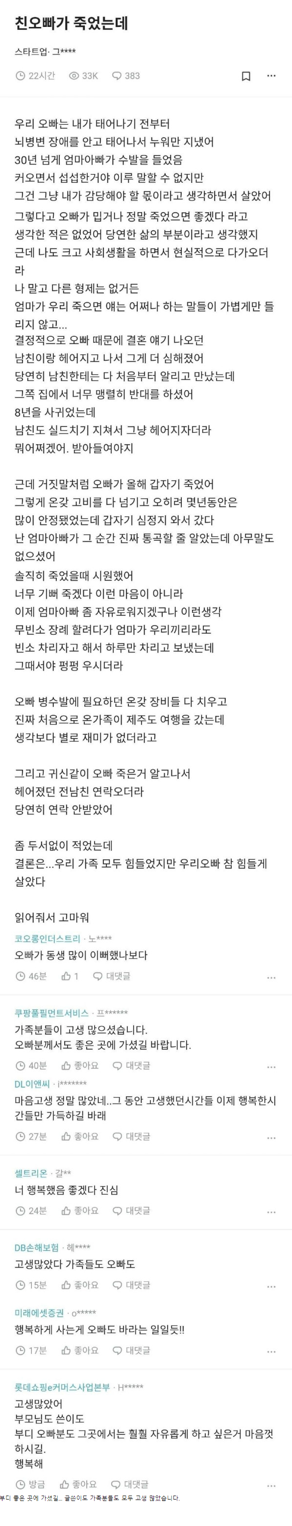 친오빠의 죽음에 대한 회고 0
