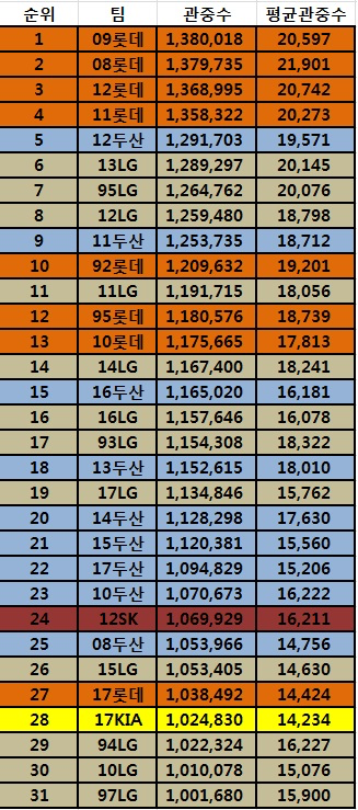 Subject   KBO 역대 팀 관중수 순위.
