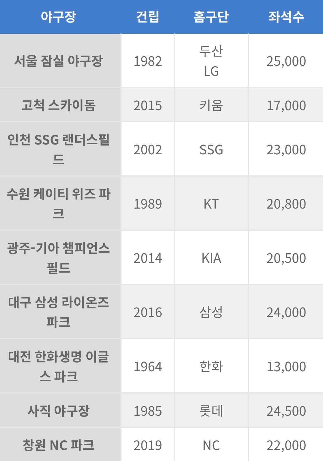 | Subject | KBO 야구장 별 완공 시점 대통령들 |