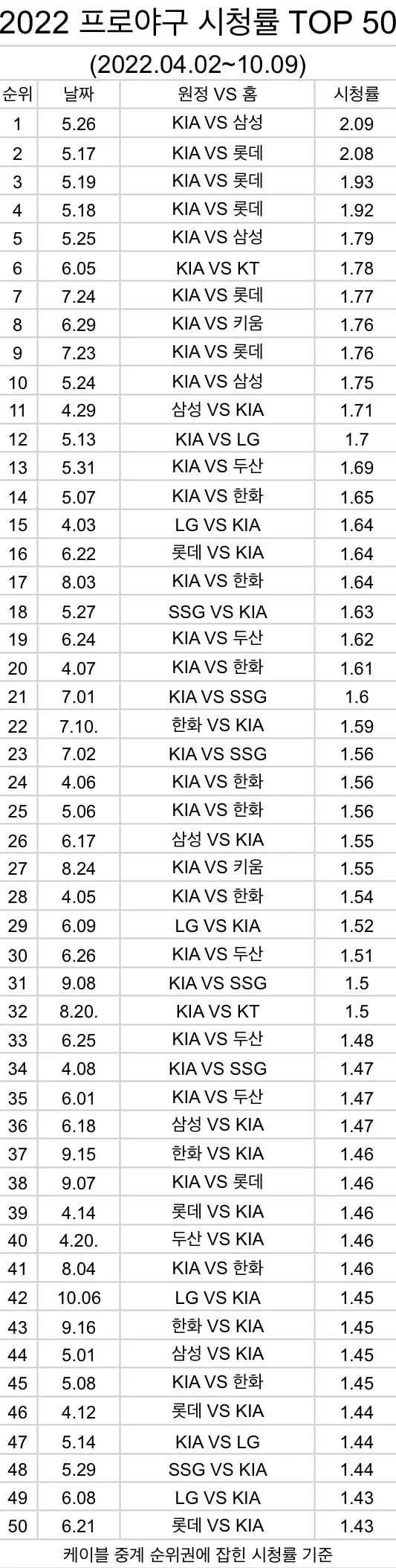 | Subject | 2022 KBO 시청률 50. |