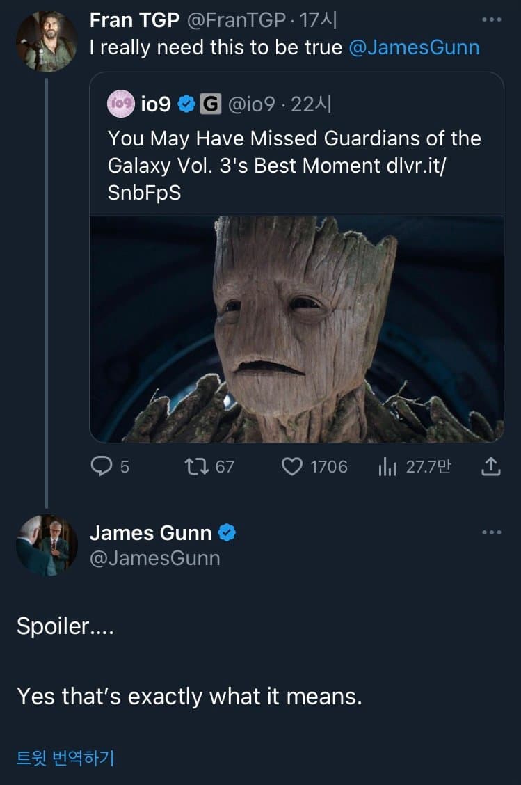 | Subject | [민감스포] 가오갤3 관련 제임스건 트위터 |