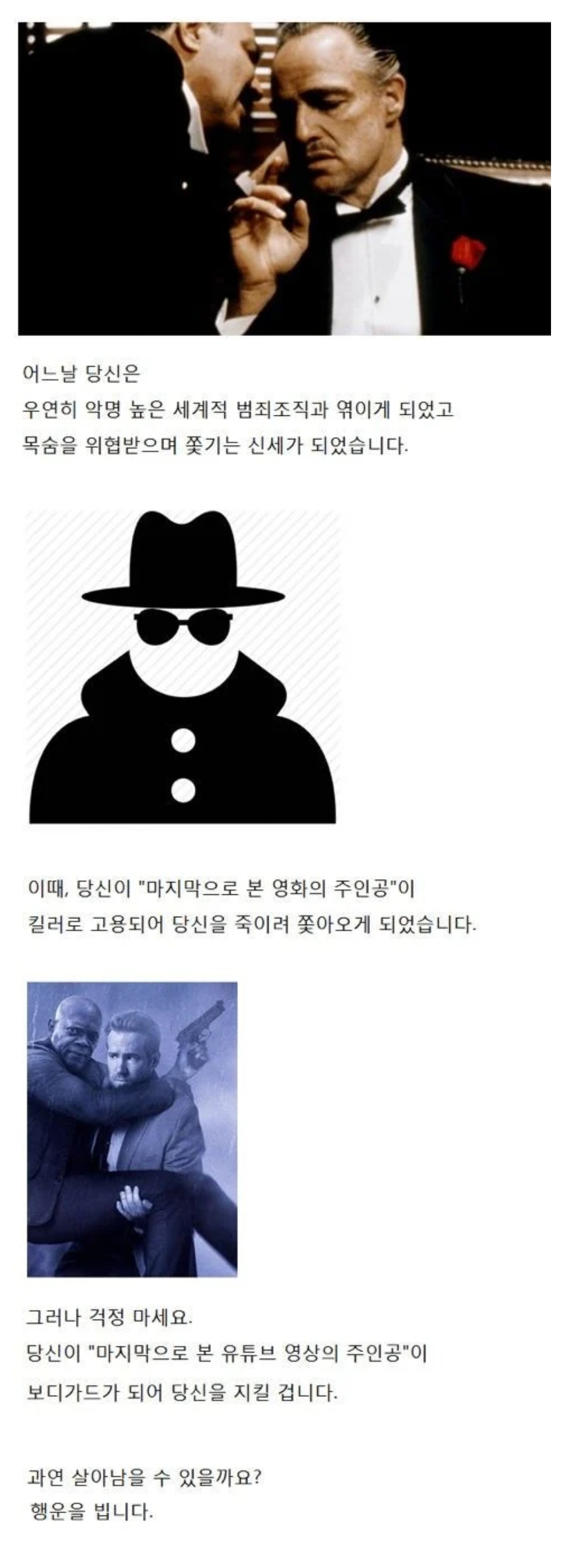 | Subject | 당신이 마지막으로 본 영화 주인공이 당신을 죽이러 옵니다 |
