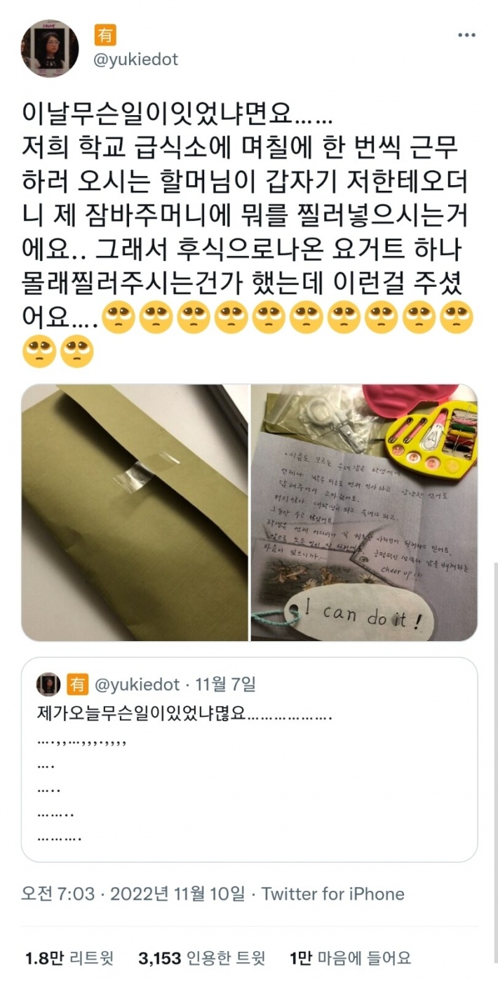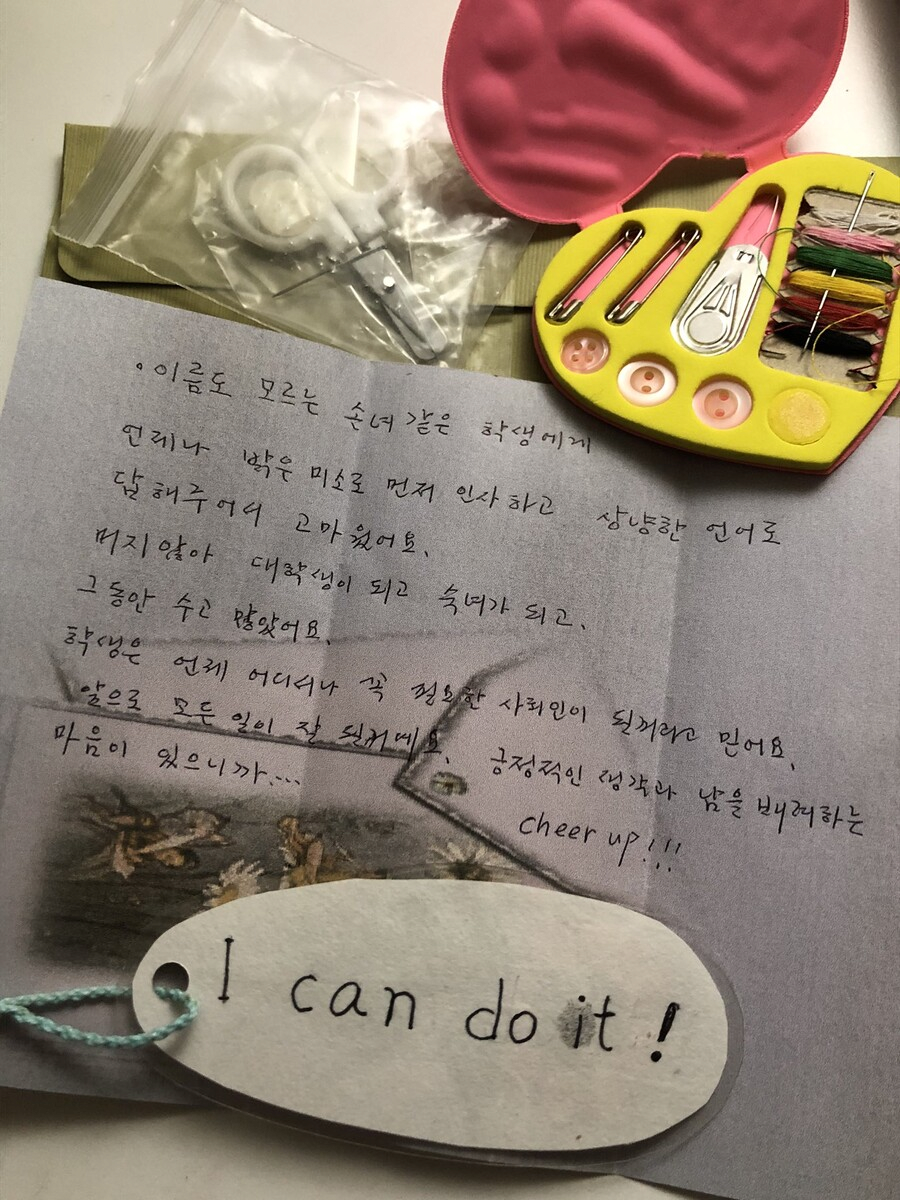 | Subject | 학교 급식소에서 일하시는 할머니가 주신 선물과 손편지 |