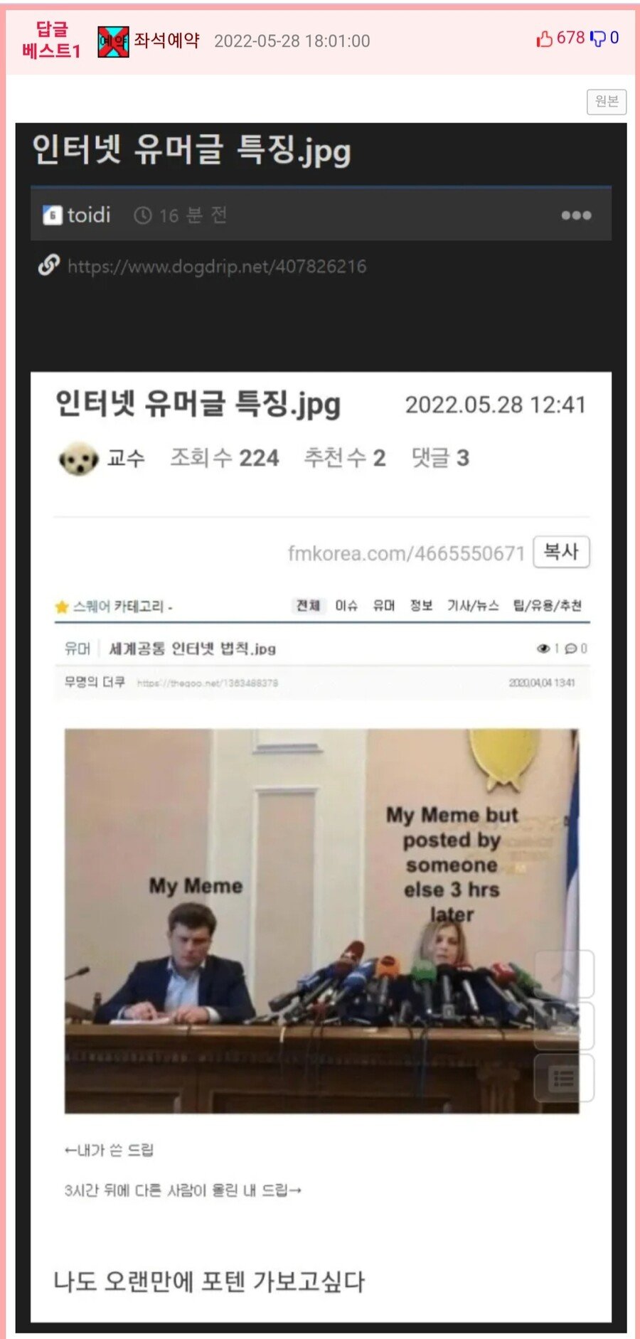 - 유머가 아닌 펌글, 영상 등 가볍게 볼 수 있는 글들도 게시가 가능합니다.