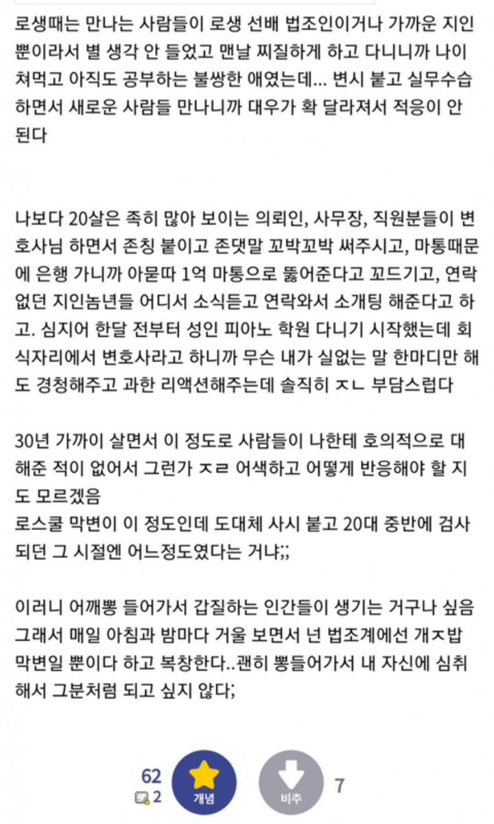 62442 변호사 되고 대우가 달라져 적응이 안된다는 디씨총각. 15 tannenbaum 23/05/19 4443 2