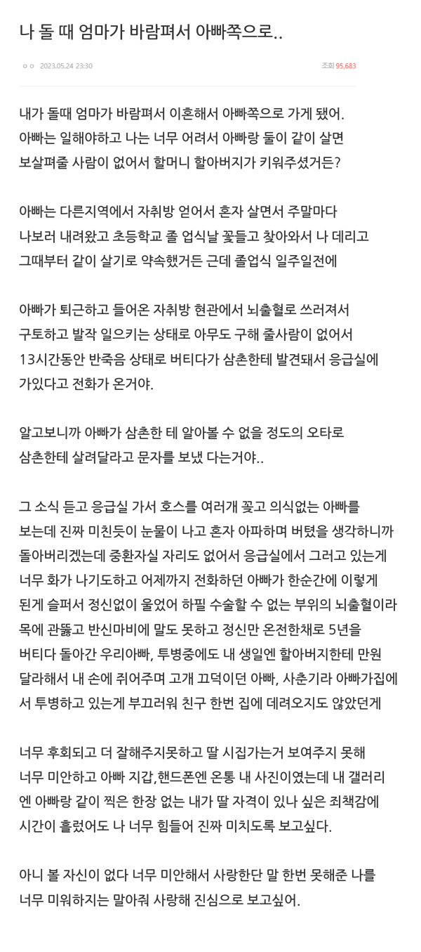 Subject   나 돌 때 엄마가 바람펴서 아빠쪽으로..