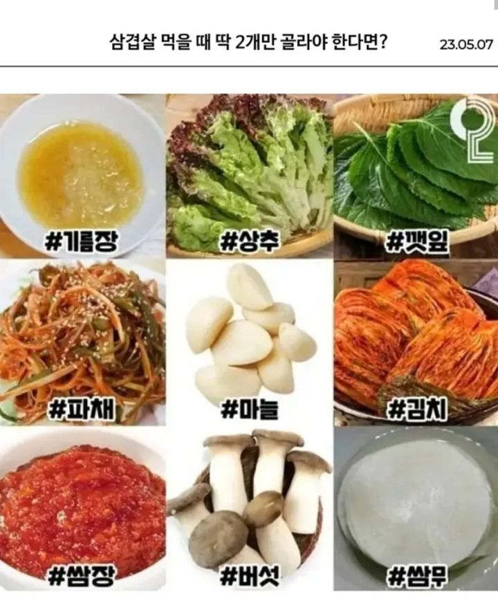 삼겹살 먹을때 꼭 두개만 골라야 된다면? 0