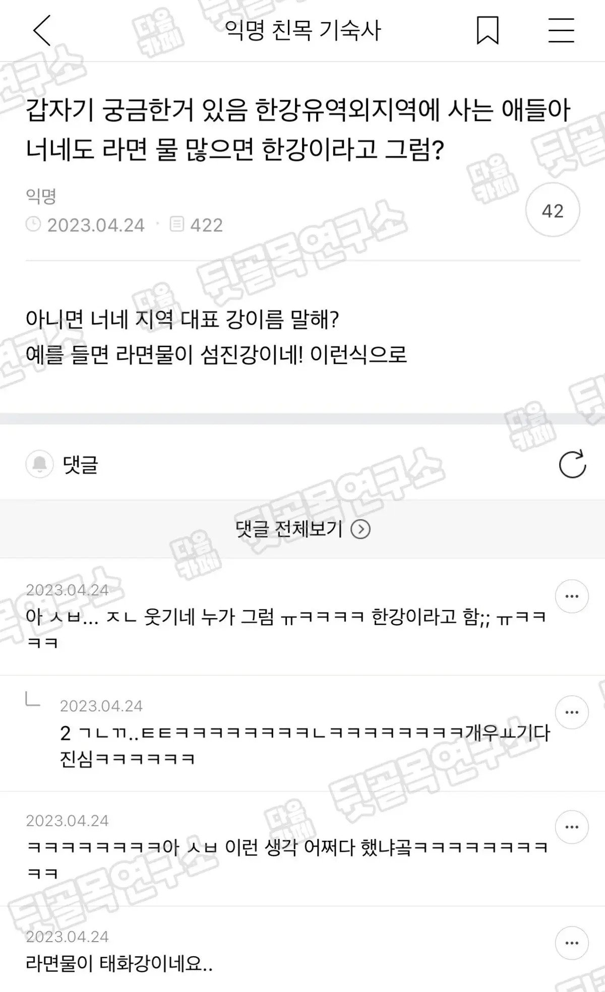 | Subject | 지방사람들도 라면물 많으면 한강이라 그래? |