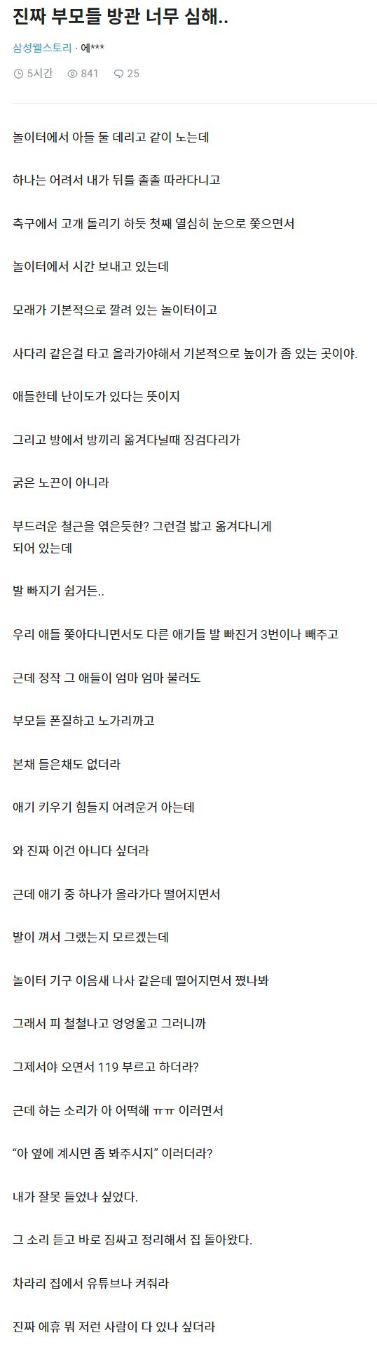 | Subject | 진짜 부모들 방관 너무 심해… |