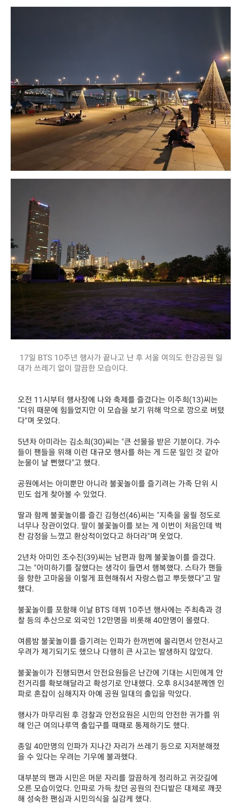 | Subject | BTS 10주년 행사로 40만명이 다녀간 한강공원 상태.jpg |