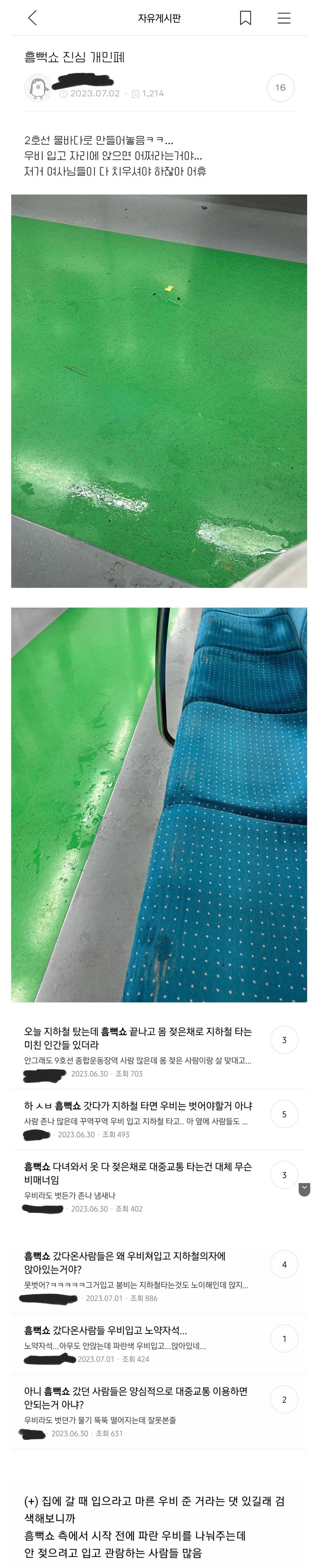 대중교통 이용할 순 있는데 젖은채로 그대로 좌석에 앉아가면 어쩌자는건지… ㅡㅡ 0