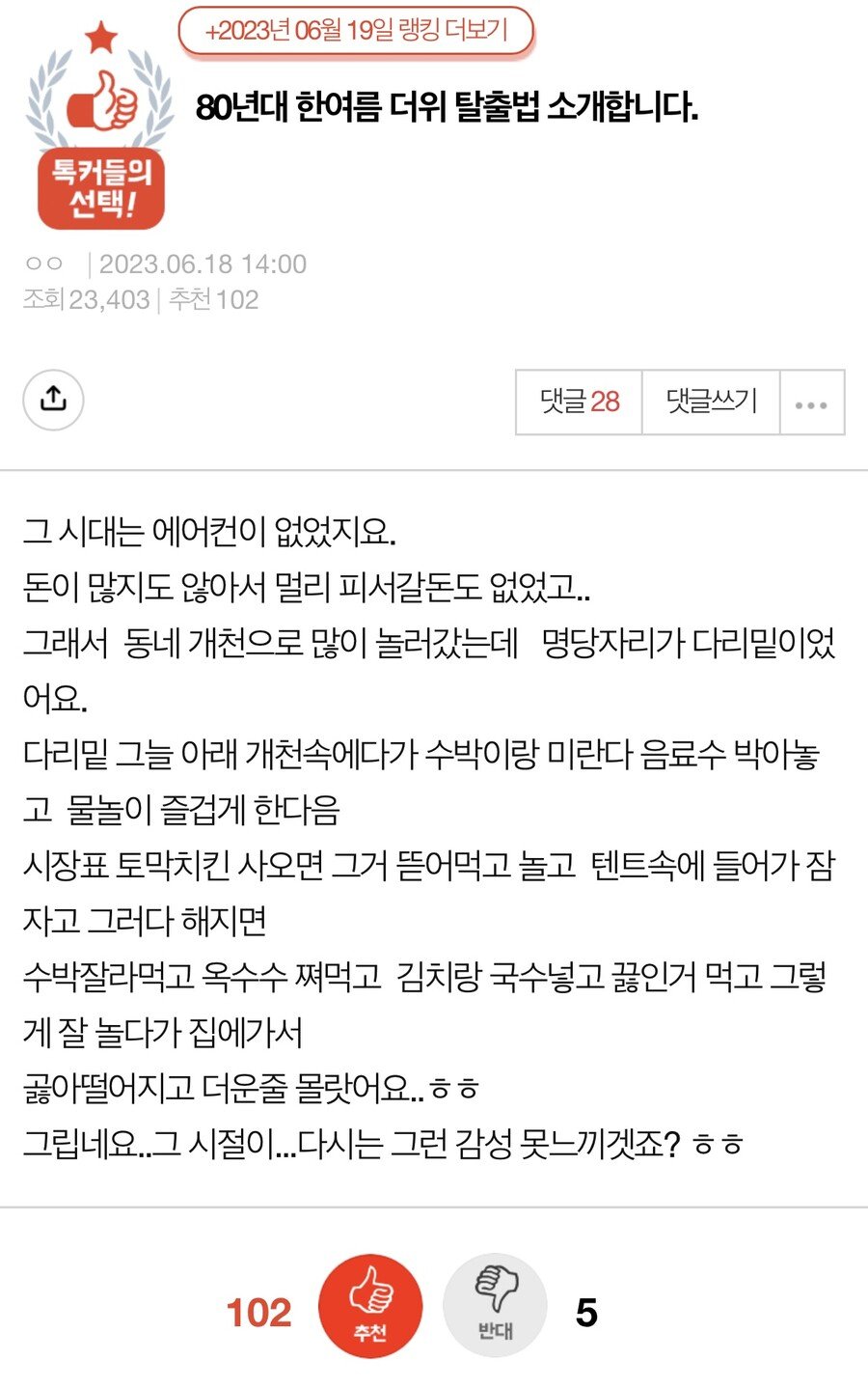 저도 어릴때 개천 밑에 자주 놀러갔던 기억이 나네요. 너무 더우면 집 앞 평상에 돗자리 펴고 누워 잠들었던 기억도 나고 ㅎㅎ 0