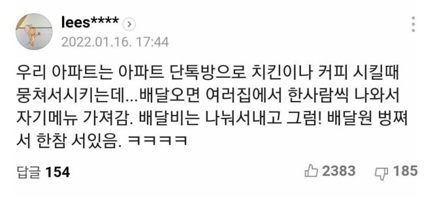 | Subject | 힘을 합쳐 배달비 아끼는 아파트.jpg |