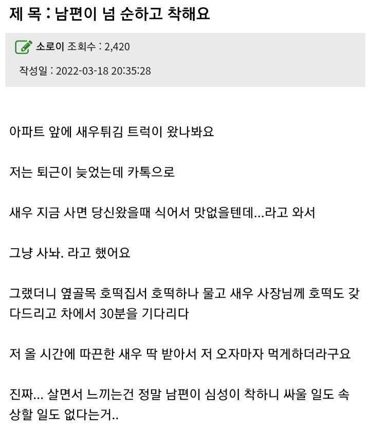 | Subject | 남편이 넘 순하고 착해요 |