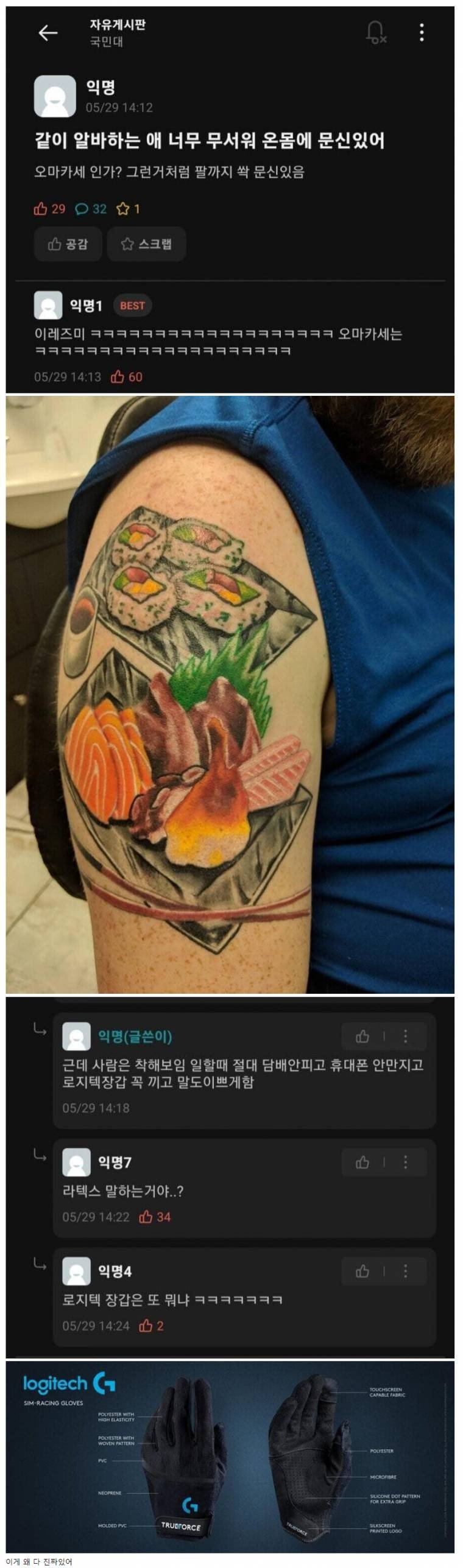 | Subject | 오마카세문신과 로지텍 장갑을 끼고 일하는 알바 |