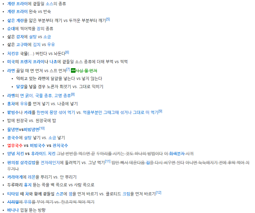 나무위키 글의 부먹 vs 찍먹 항목 내의 별도 예제 입니다.