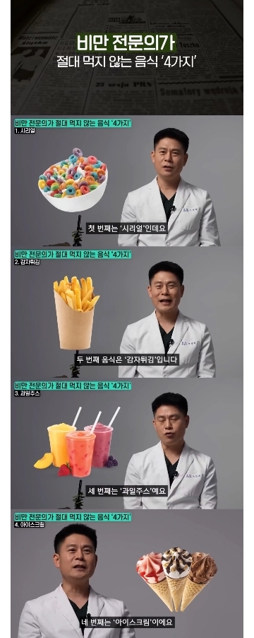 | Subject | 비만 전문의가 절대 먹지 않는 네 가지 음식 |