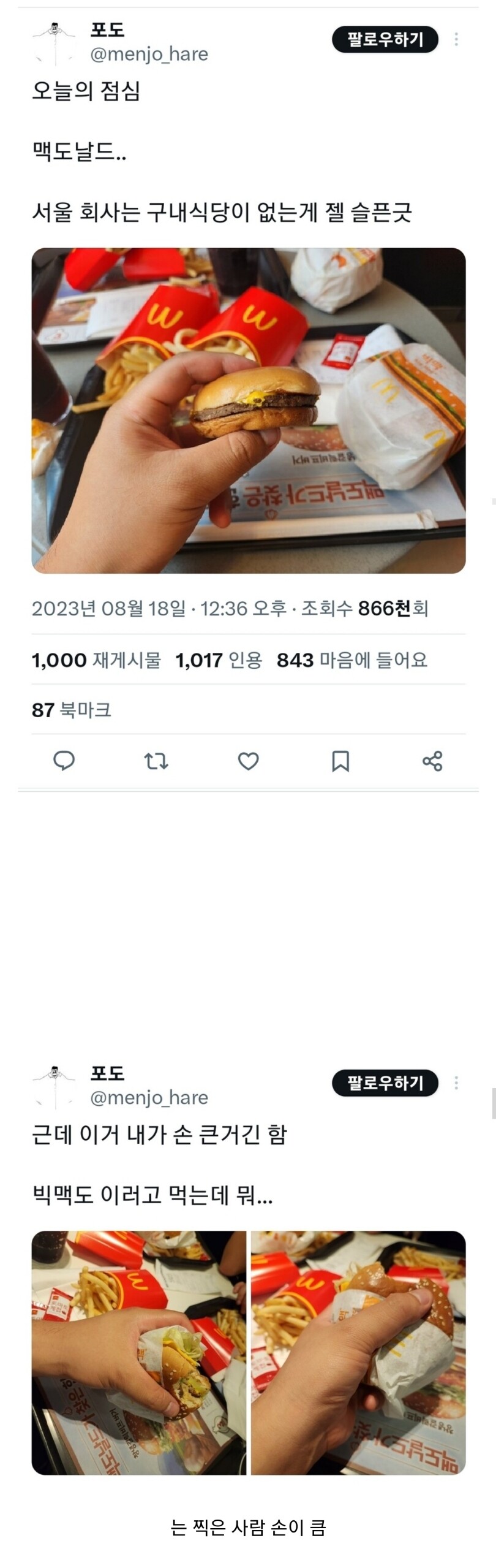 | Subject | 트위터에서 합성 논란으로 화제였던 빅맥 한손좌 근황 |