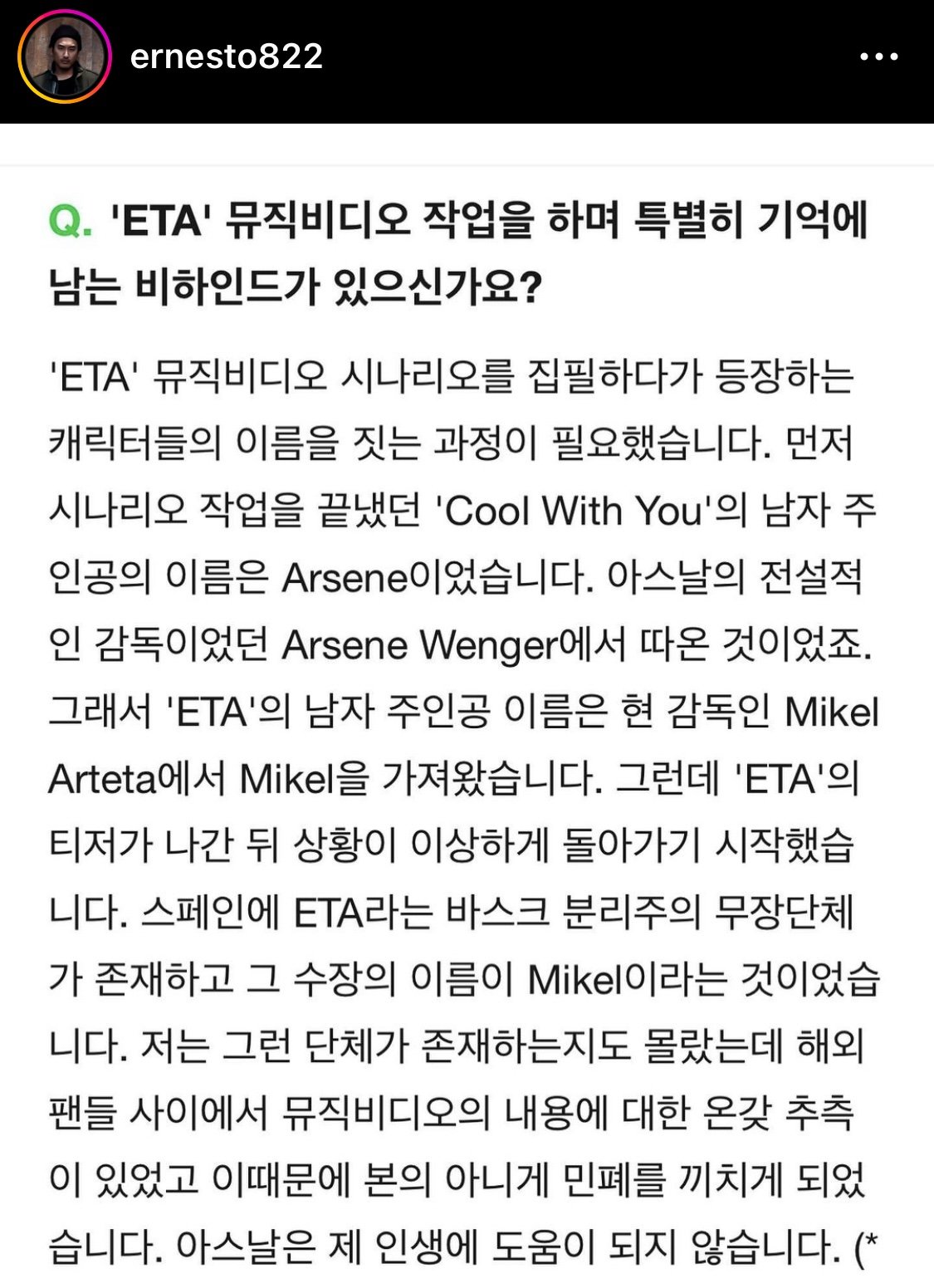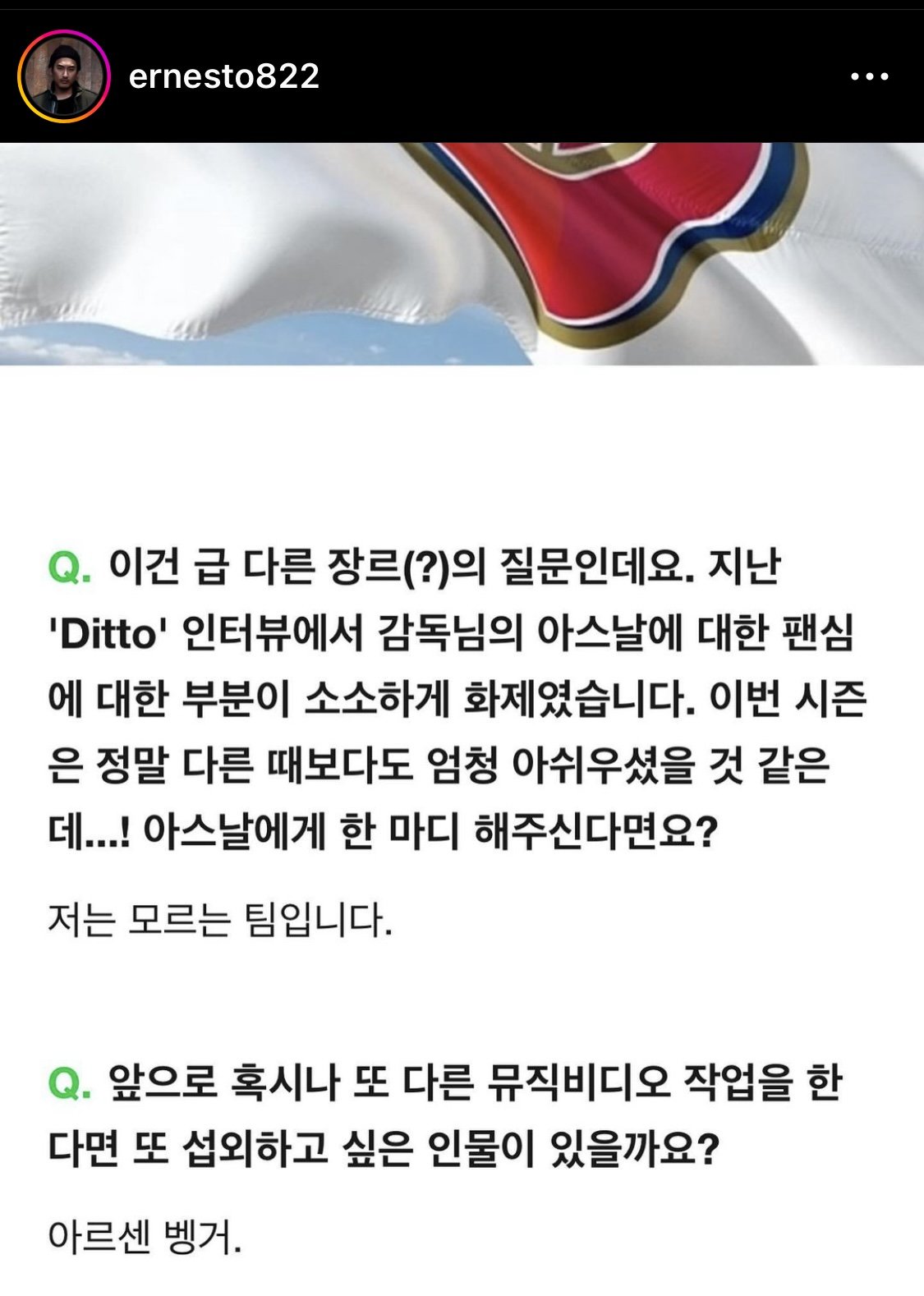 | Subject | 뉴진스 MV 디렉터 신우석 감독 아스날 관련 인터뷰 |