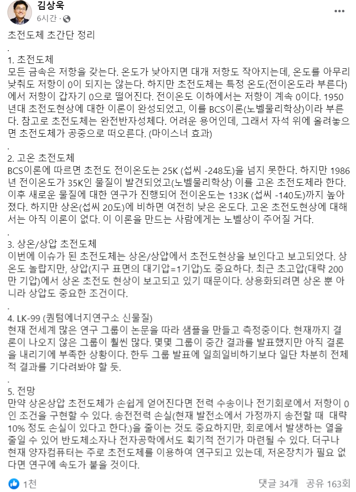 김상욱 교수님 초전도체 간단정리 0