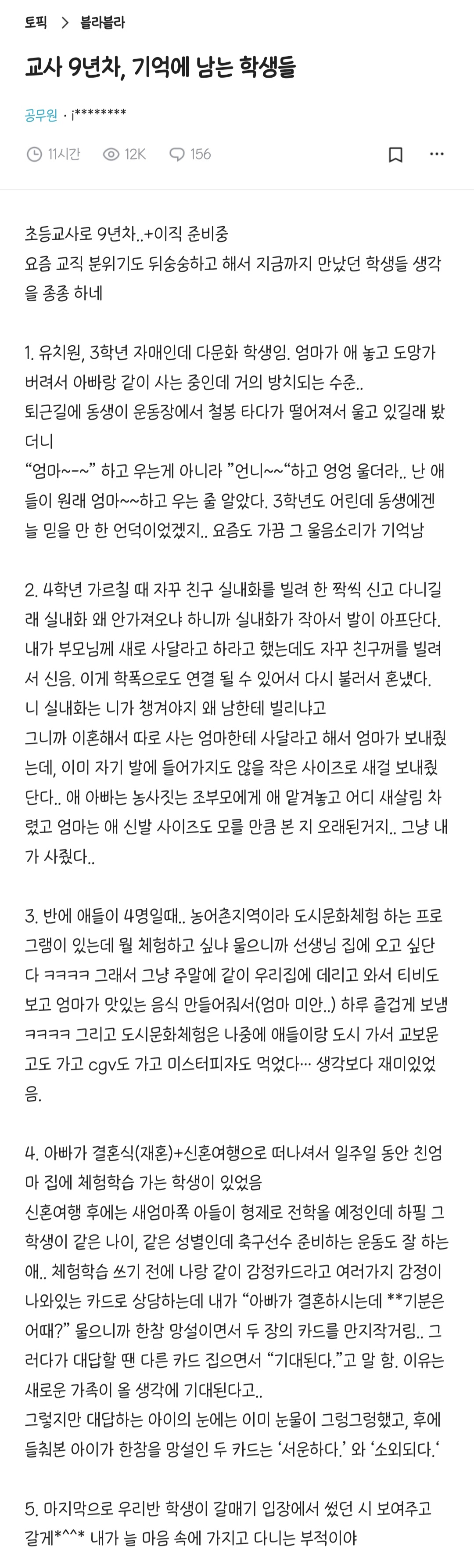| Subject | 교사 9년차, 기억에 남는 학생들 |