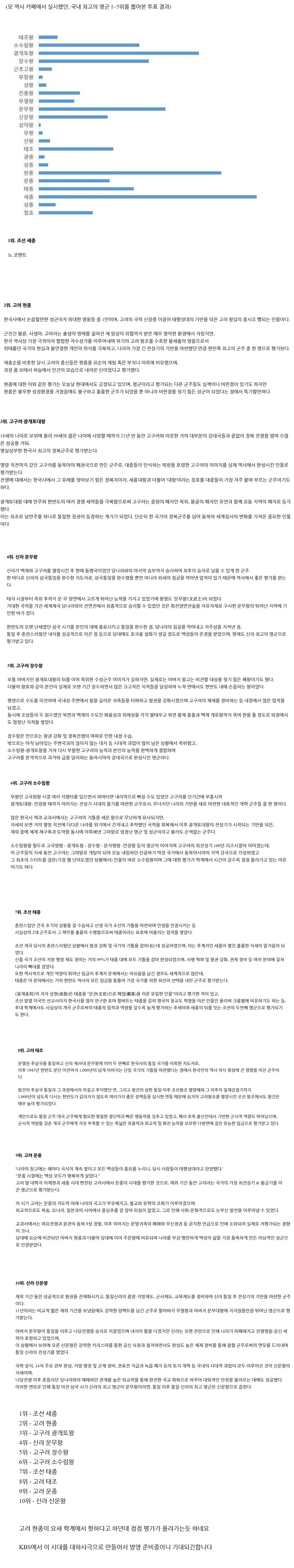 영조, 정조는 있을줄 알았는데 하나도 없는게 의외군요. 백제는 사료가 너무 없어서 그런가 하나도 없고..고구려는 생각보다 많이 포함되었군요.고구려는 사료가 많은 편인가..?? 0