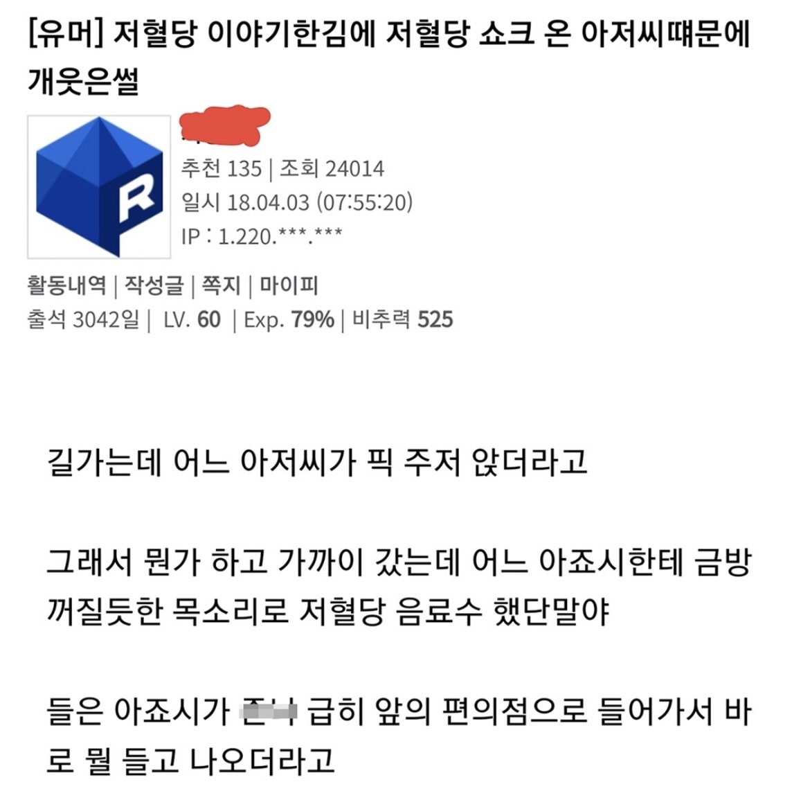 Subject   저혈당쇼크온 아저씨 때문에 개웃은썰